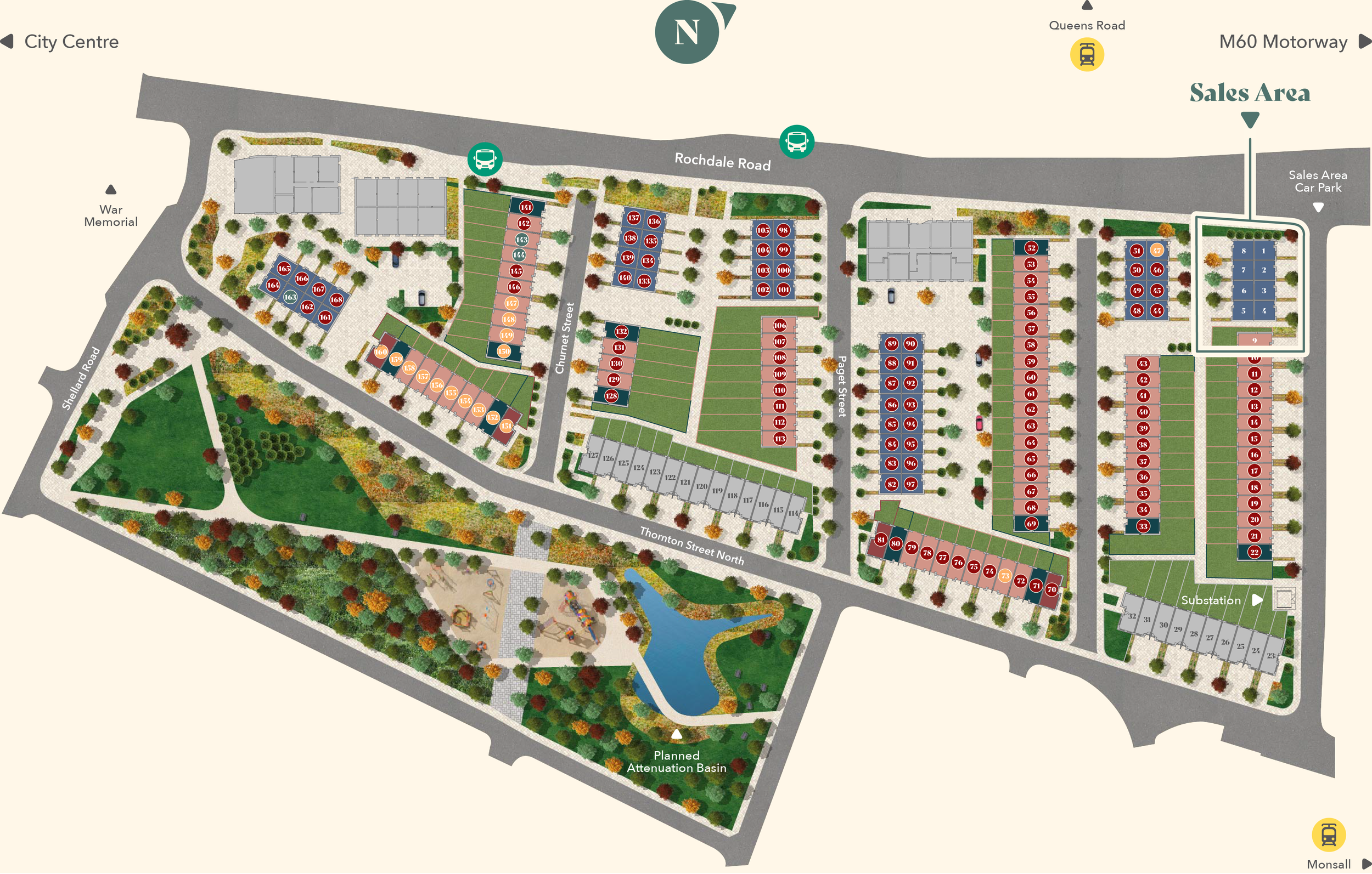 Check the map below to see the location and house type of each available plot at Collyhurst Village.